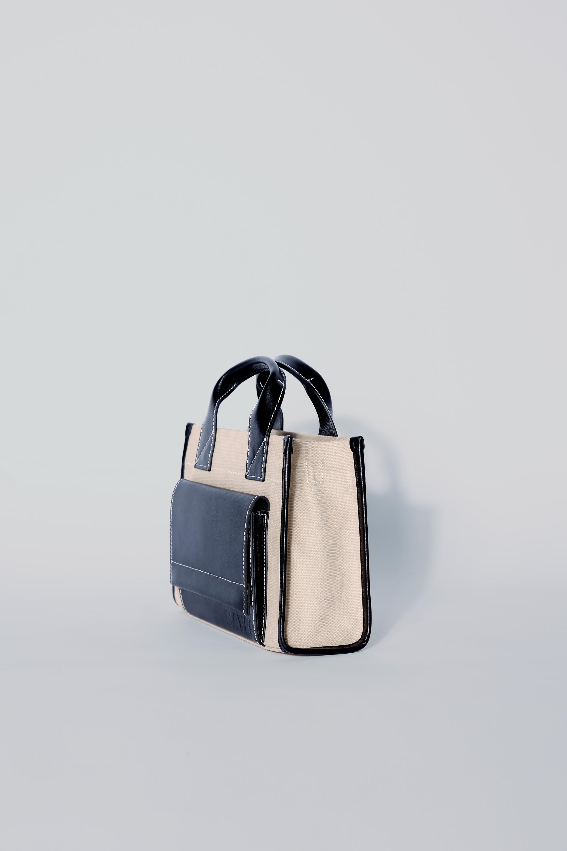 STITCHED POCKET MINI TOTE IN BEIGE/BLACK