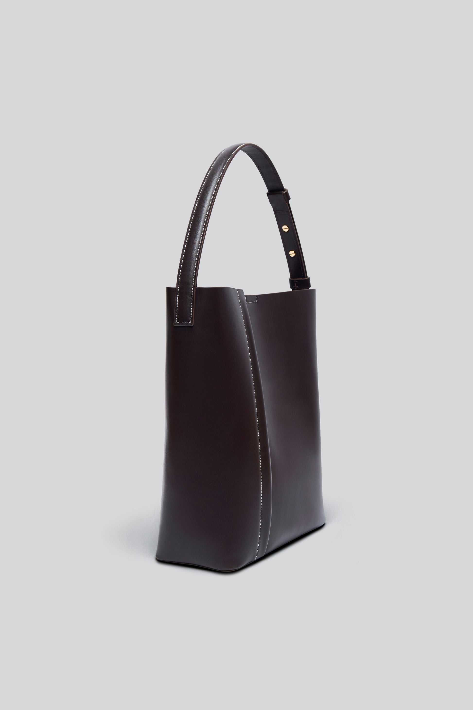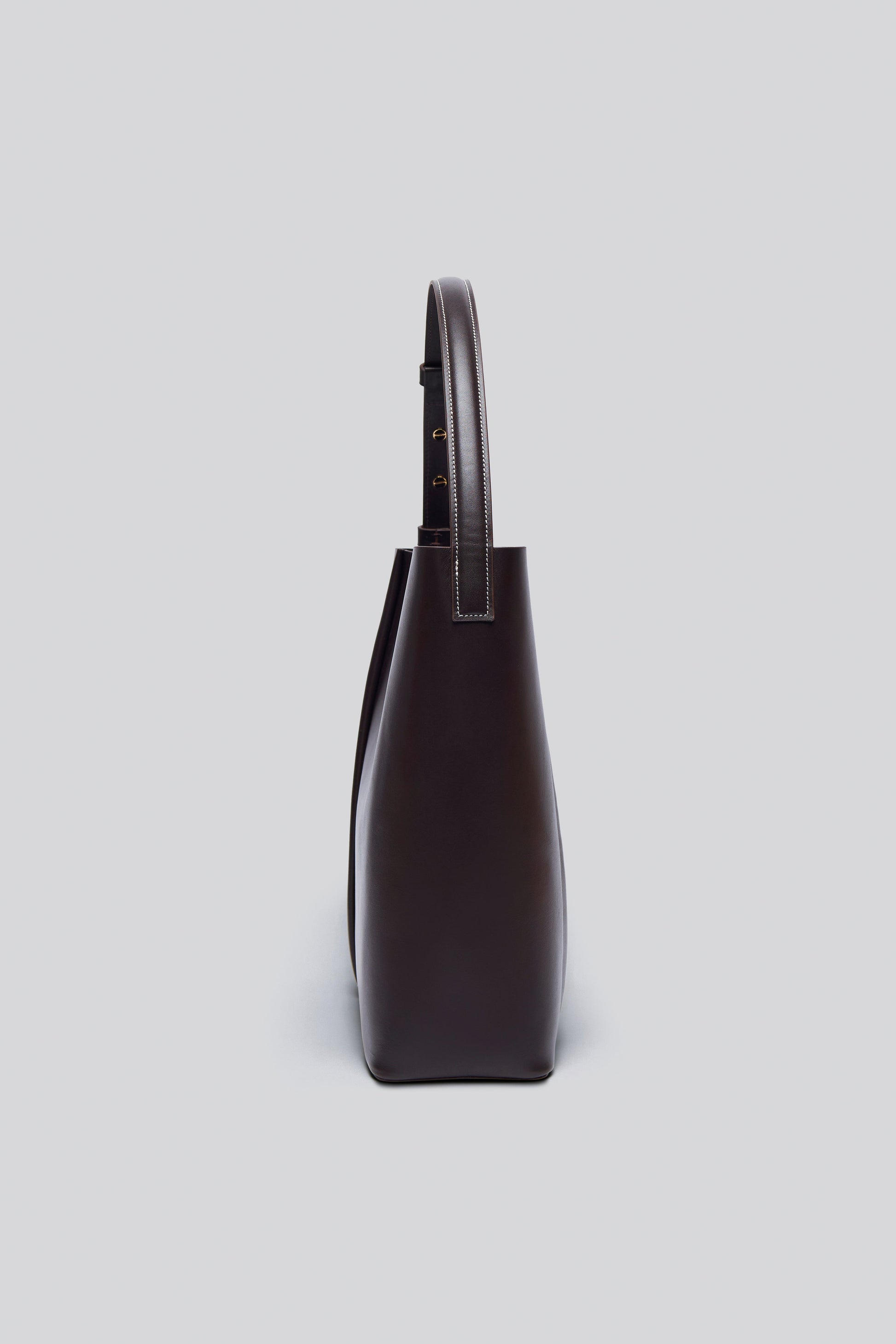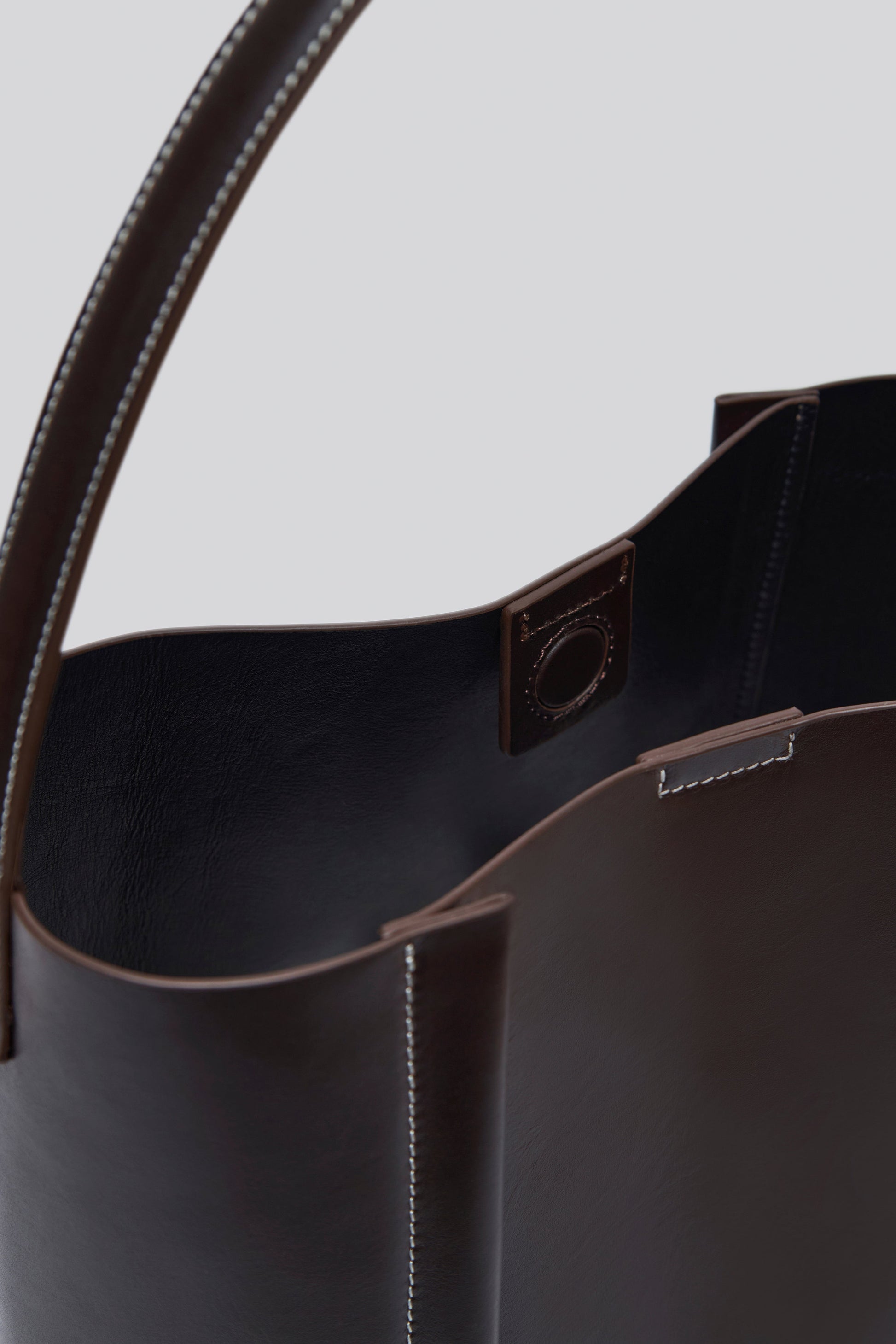 Yumuşak, hafif parlak bitişli dana derisi kullanılarak tasarlanan The Large Tote Plissé, pile dikişi sayesinde dik yapısını koruyarak modern ve minimal bir siluet oluşturuyor. Tasarım, geniş iç hacmi, ayarlanabilen omuz askısı ve gizli mıknatıslı kapanışıyla günlük kullanımda fonksiyonellik sunuyor.