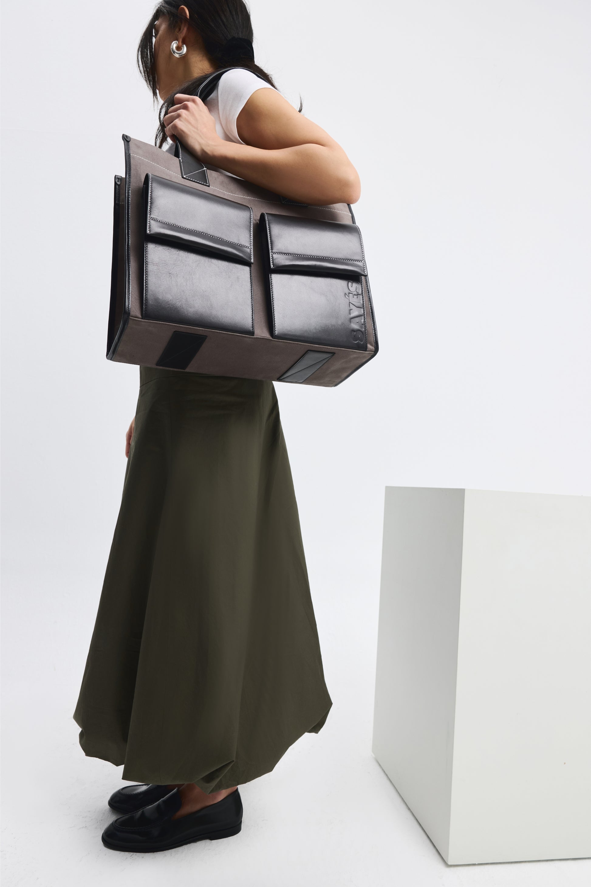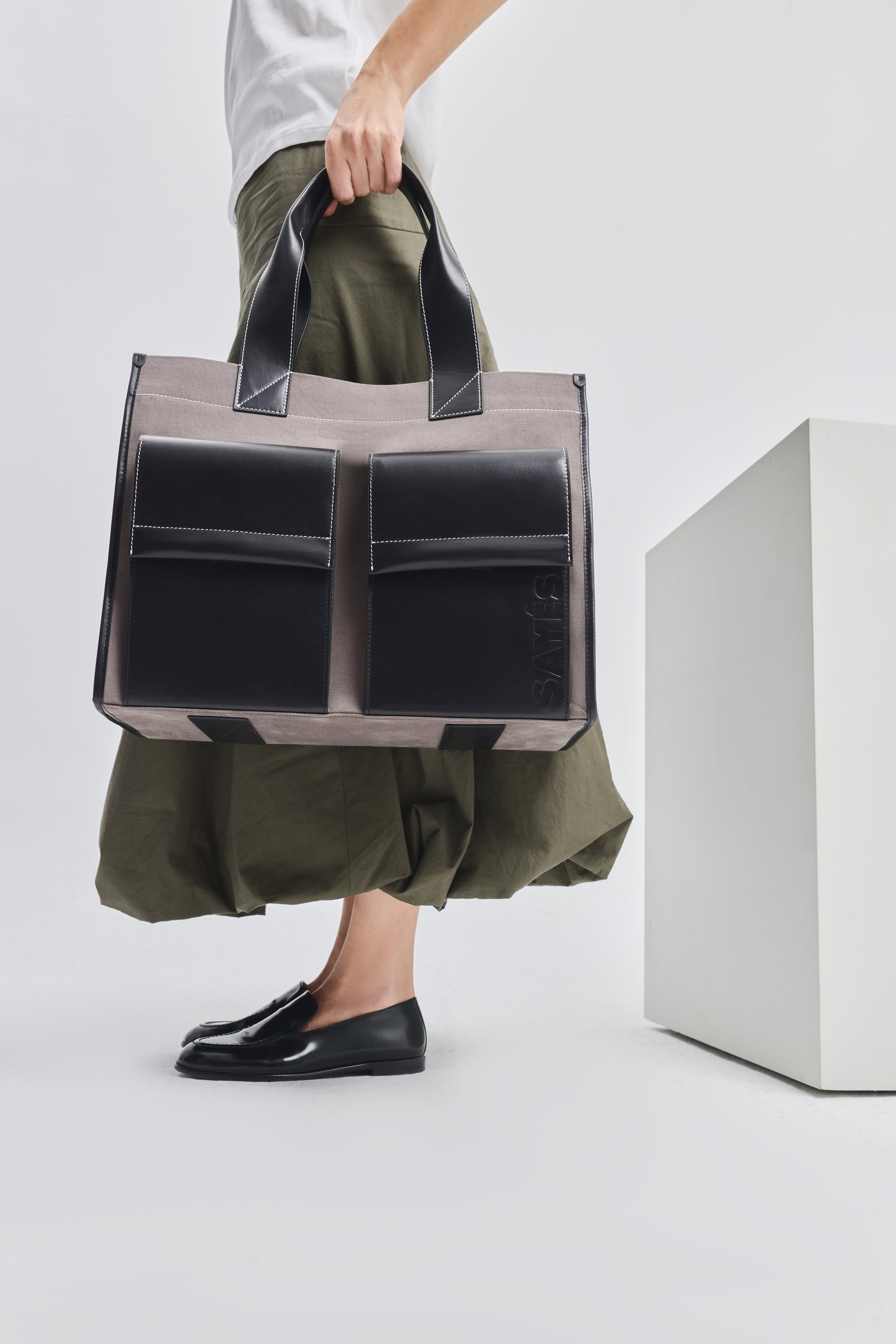 STITCHED POCKET MAXI TOTE VİZON/SİYAH
