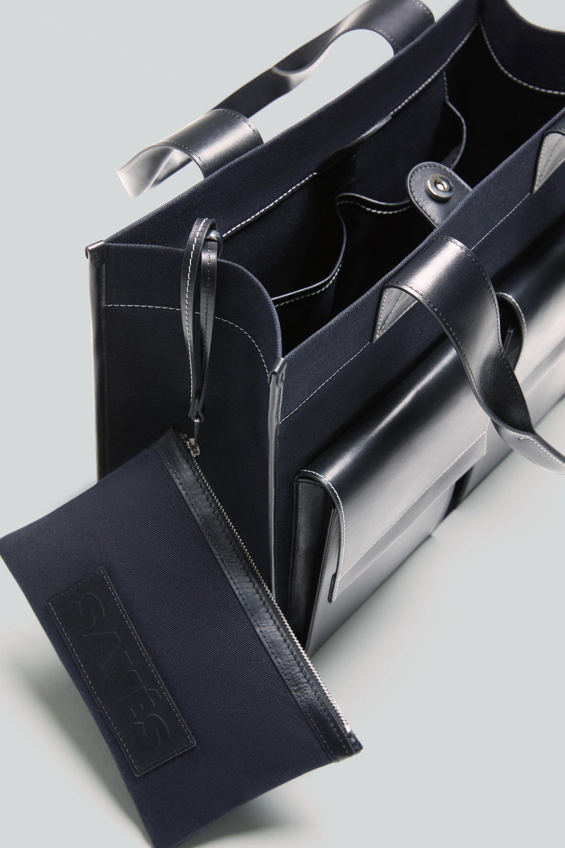 SAYÉS Stitched Maxi Tote, özgün katlama detaylı cep tasarımları ile ön plana çıkarken, kanvas denim ve dana derisi üzerindeki belirgin kırık beyaz dikişleri bu modele kontrast bir estetik katmaktadır. İçerisinde yer alan takıp çıkarılabilen SAYÉS logolu clutch çantası, geniş iç hacmi, mıknatıs kapanışlı iki adet ön cebi, iki adet iç bölmesi ve arka bölmesi ile çok yönlü bir fonksiyonellik sunmaktadır.