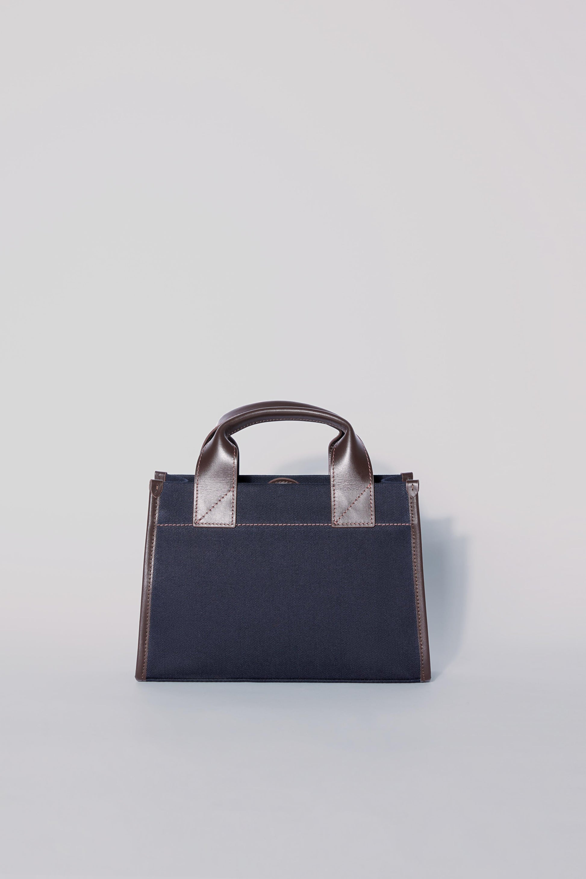 STITCHED POCKET MINI TOTE LACİVERT/KAHVERENGİ
