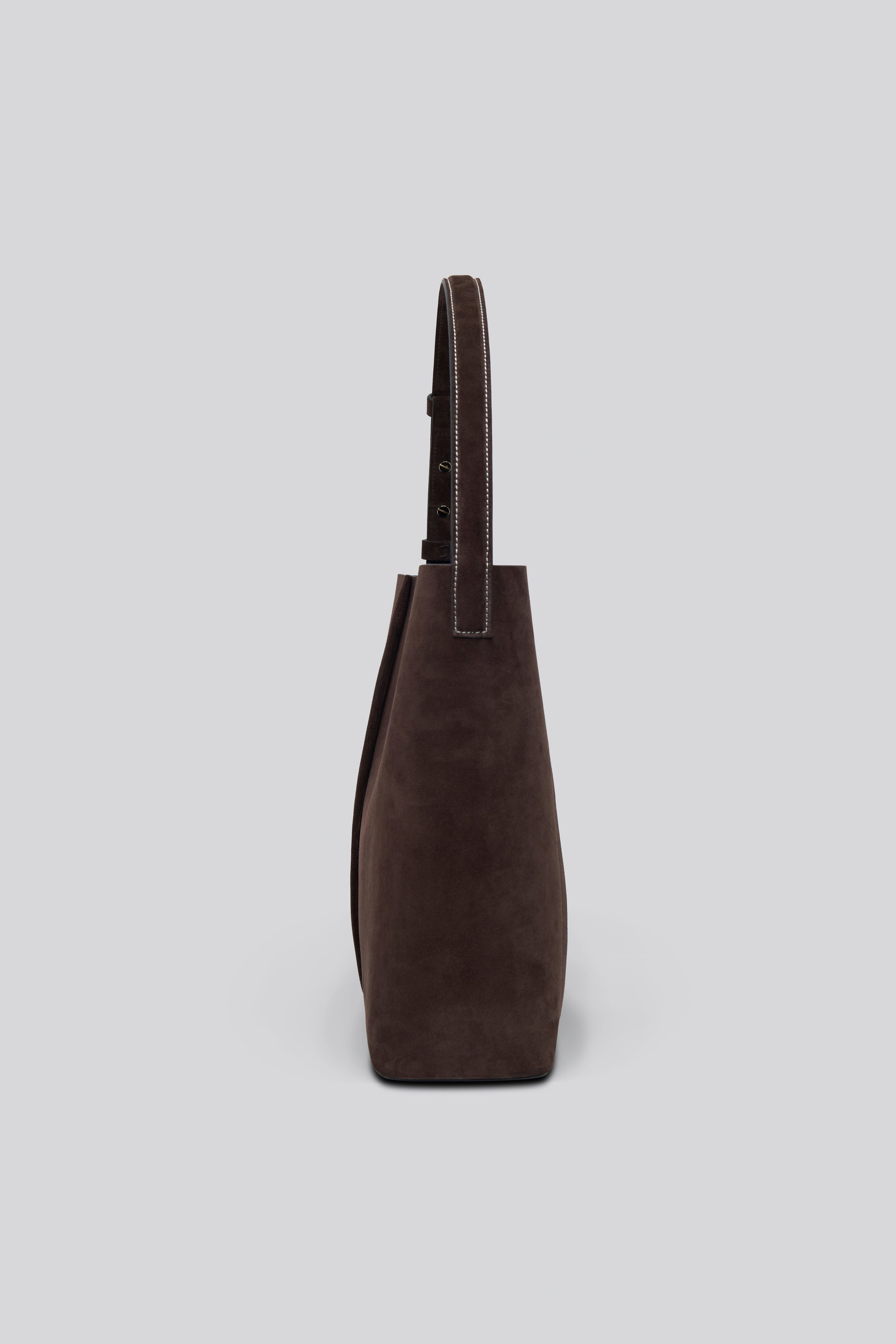 Yumuşak kahverengi süet kullanılarak tasarlanan The Large Tote Plissé, pile dikişi sayesinde dik yapısını koruyarak modern ve minimal bir siluet oluşturuyor. Tasarım, geniş iç hacmi, ayarlanabilen omuz askısı ve gizli mıknatıslı kapanışıyla günlük kullanımda fonksiyonellik sunuyor.