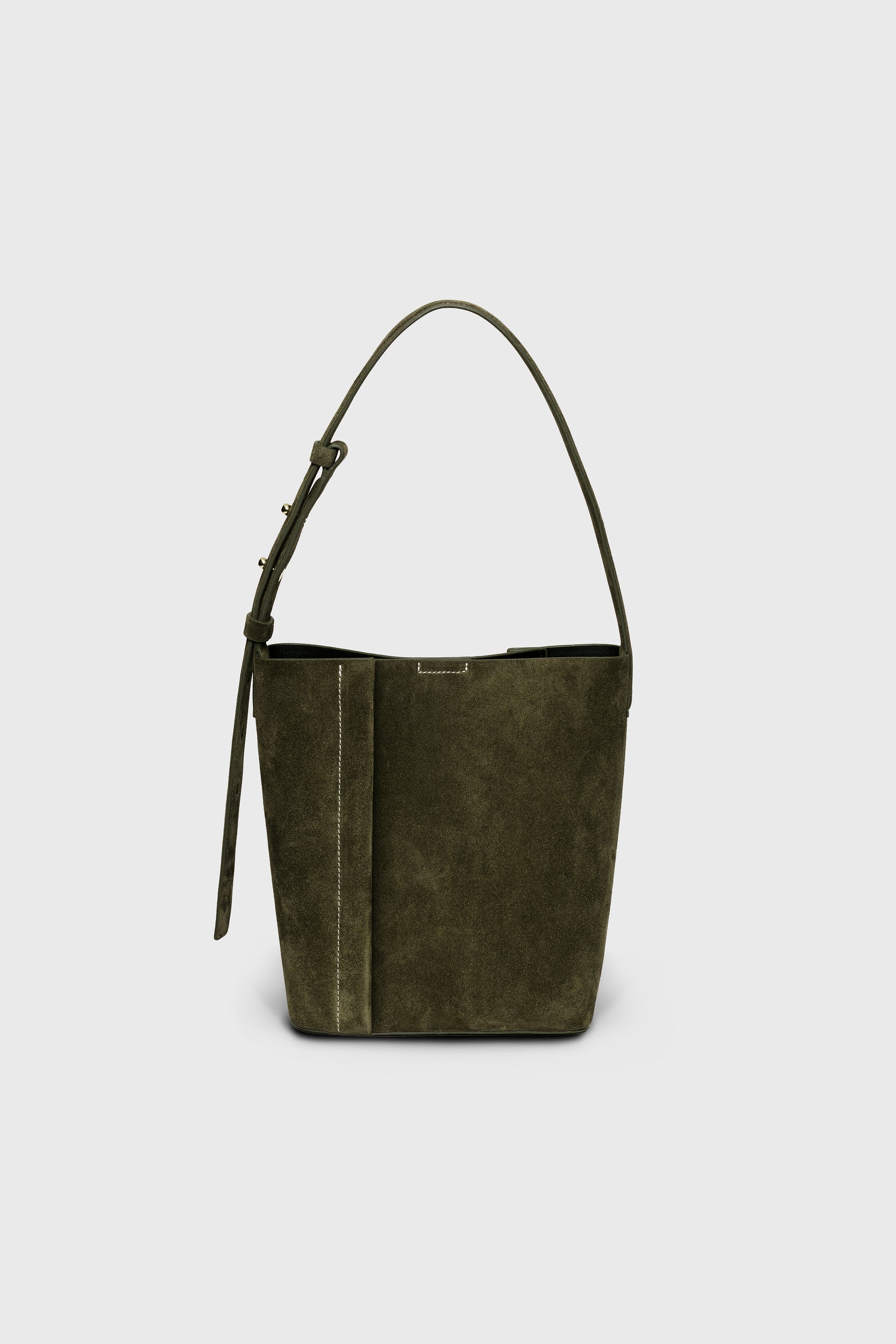 Yumuşak ve kadifemsi dokuya sahip haki süet deri üzerindeki belirgin kırık beyaz dikişlerle kontrast bir estetik sunan  The Tote Plissé, geniş iç hacmi ve ayarlanabilir omuz askısıyla günlük eşyalarınızı rahatça taşımanızı sağlar. Deri astarı rafine bir dokunuş katarken, çıkarılabilir iç çantası küçük eşyalarınızı şehir içinde hareket halindeyken güvenle taşımanıza yardımcı olur.