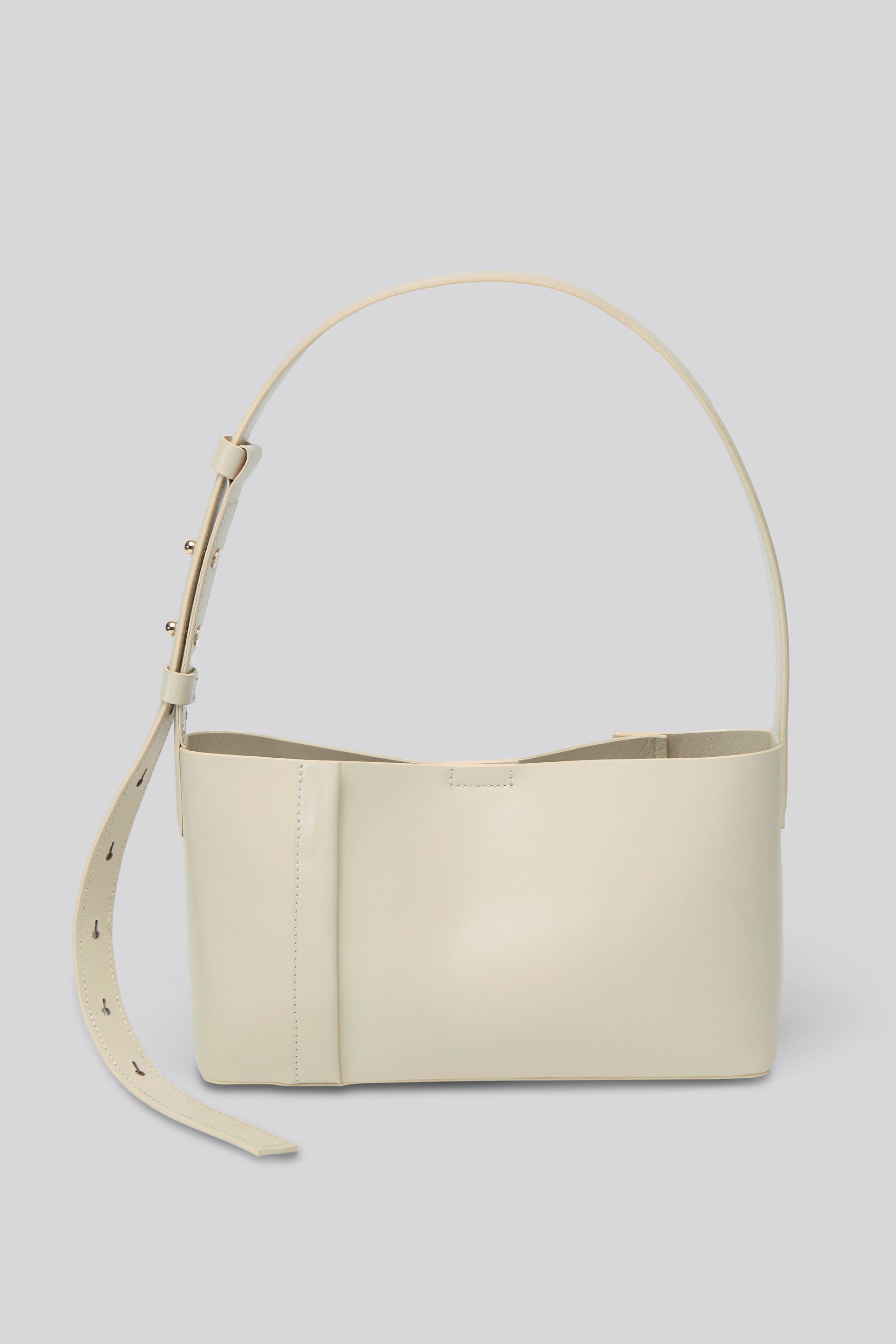 The Small Tote Plissé, ilk koleksiyonda yer alan Stitched Pocket Tote çantanın cep kıvrımını yeniden yorumlayarak, çapraz simetrik pileli tasarımı ve yatay formuyla modern ve minimal bir siluet oluşturuyor. Yumuşak, hafif parlak bitişli dana derisi kullanılarak tasarlanan Small Tote Plissé, zarif tasarımı ve ayarlanabilir askısıyla omuzda ya da çapraz şekilde taşınabilme imkanı sunarak günlük kullanımda şıklığı ve fonksiyonelliği bir araya getiriyor.